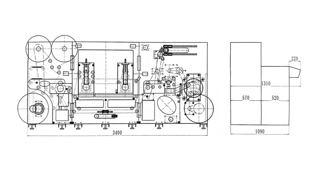Dos (2) unidades de troquelado intermitente, equipadas con dos (2) cilindros magnéticos de 168 dientes, con rebobinado de desperdicio tipo “snowball”